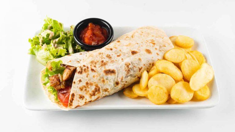 STUFFING meat, tortilla ø30 cm, grilled vegetables, tomato, onion, cabbage, lettuce, Cezar sauce
